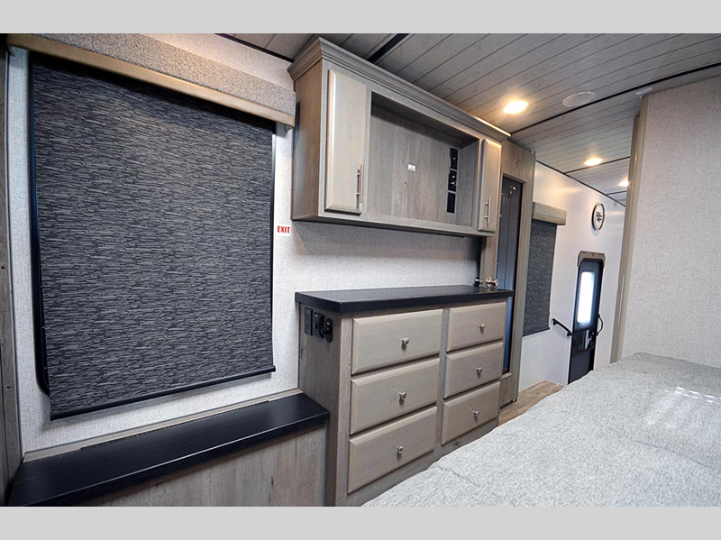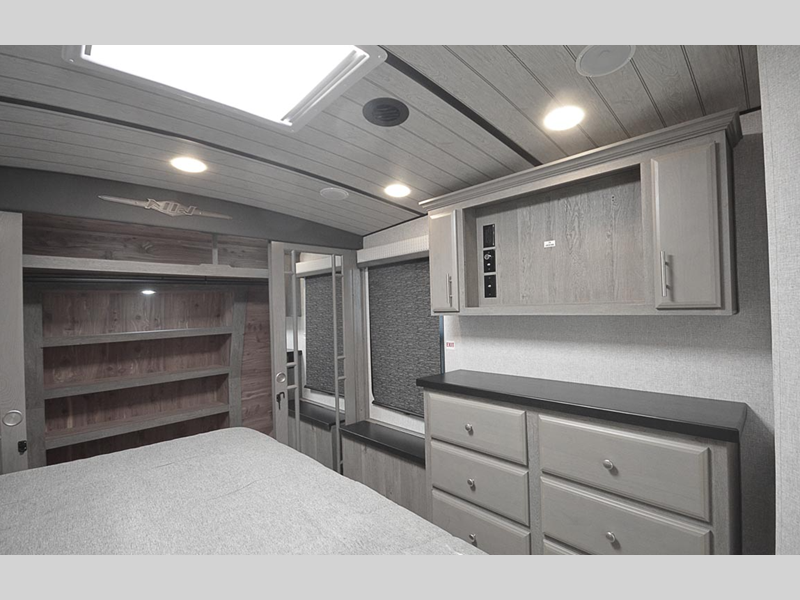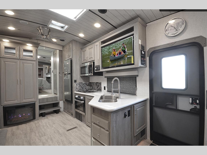 Sleeps 4 Slides 2 Length 34 ft 7 in Ext Width 8 ft 6 in Ext Height 13 ft 4 in Interior Color Moonstone, Carbon, Kona Hitch Weight 2545 lbs GVWR 15800 lbs Dry Weight 12735 lbs Cargo Capacity 3065 lbs Fresh Water Capacity 88 gals Grey Water Capacity 67 gals Black Water Capacity 65 gals Tire Size ST235/85R16 Furnace BTU 35000 btu Available Beds King Refrigerator Type 12V Refrigerator Size 10 cu ft Cooktop Burners 2 Number of Awnings 1 Axle Weight 10190 lbs LP Tank Capacity 80 Water Heater Capacity 16 gal Water Heater Type Gas/Elect Quick Recovery TV Info LR 40" LED Smart TV Awning Info 18' LED w/Adjustable Pitch & Weatherguard Axle Count 2 Shower Type Shower w/Seat Electrical Service 50 amp Similar Floorplans