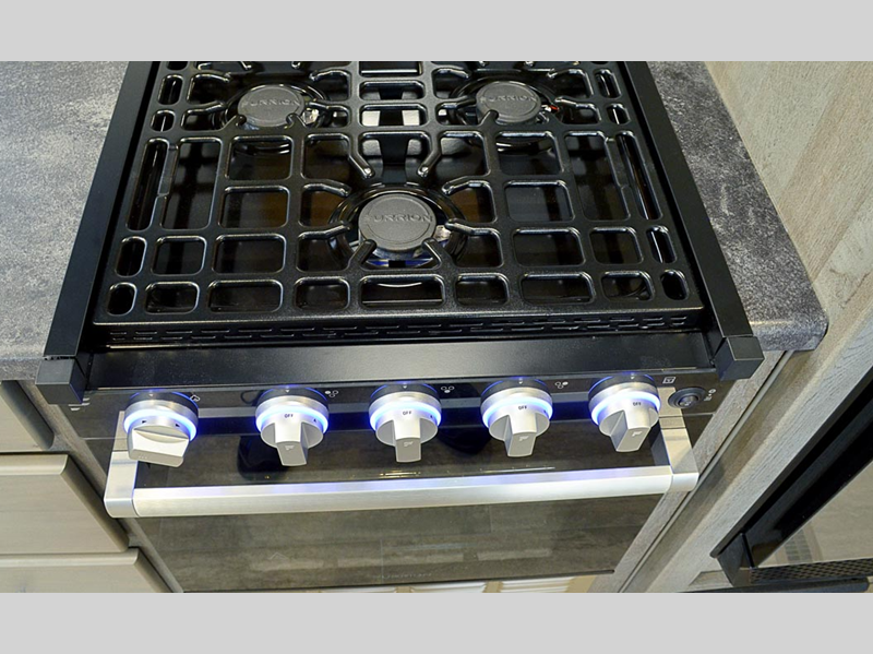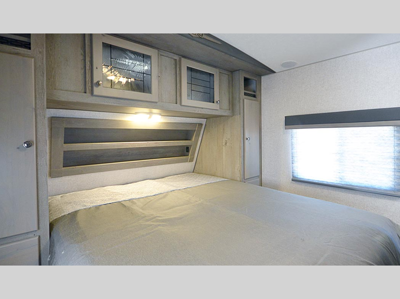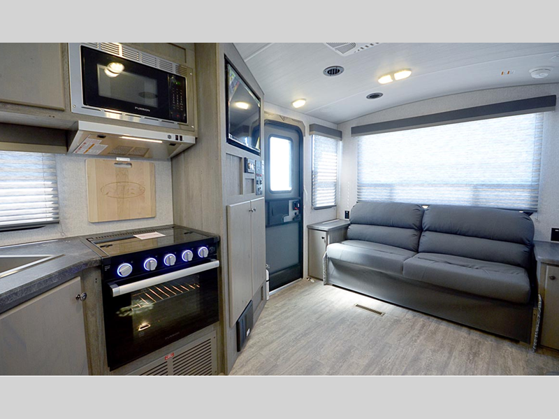 There are marine-grade speakers outside, along with an exterior shower, a 12V power tongue jack, and a friction-hinge entry door. Inside, you'll find night shades, roller bearing drawer glides, a Northwood TruRest mattress, and many more comforts. You will also appreciate the SolX 4 - 400 watt solar package for off-grid capabilities, or you can upgrade to the optional SolX 6, SolX 8, or SolX 10 on select models!