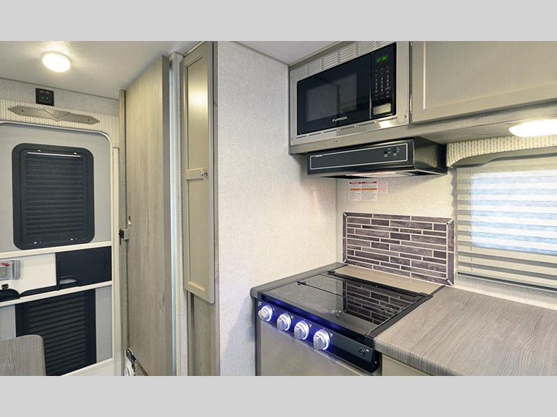 Inside, you'll love the residential wear floor covering, the hardwood cabinet doors and drawers, plus custom one-piece formed countertops and dinette table. The mandatory Wolf Pack comes with a rear electric awning, an exterior shower, convenient electric jacks, and many more features you won't want to camp without.